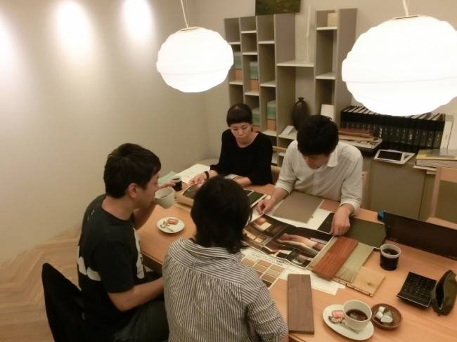 主に和室の仕様について打合せ中。壁の色は?塗り方は?畳の縁の柄は?などなど。。。和室の捉え方やお好みは千差万別です。