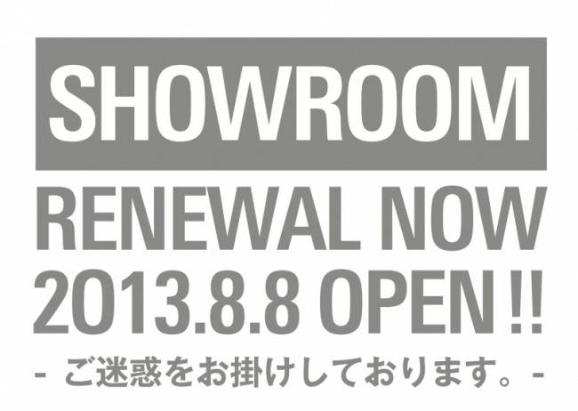 ただいま、8月オープンに向けてショールーム内を改装工事しております。工事中はご不便をお掛けしますがご理解のほどよろしくお願いします。