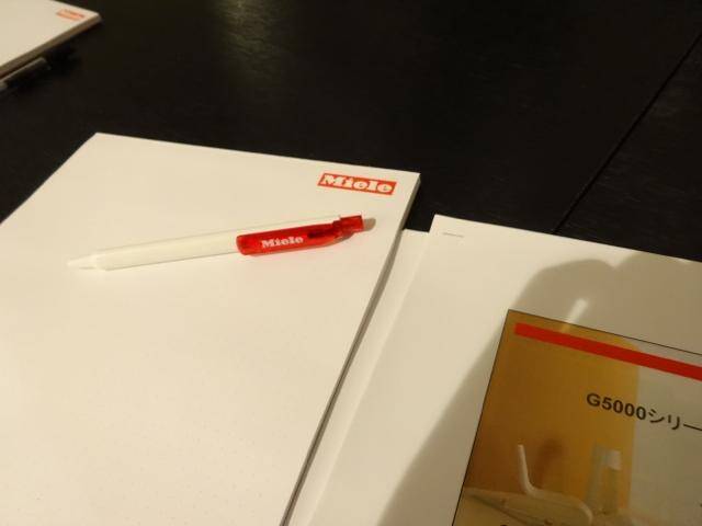 こうやって、特徴やコンセプトを学びました。感想として、絶対に日本の国産メーカーには真似できない技術や仕組みが盛り沢山でした。さすがミーレですね。余談ですが、うれしいノベリティもいただきました!