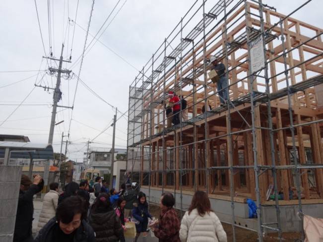 上棟後には、餅投を行いました。