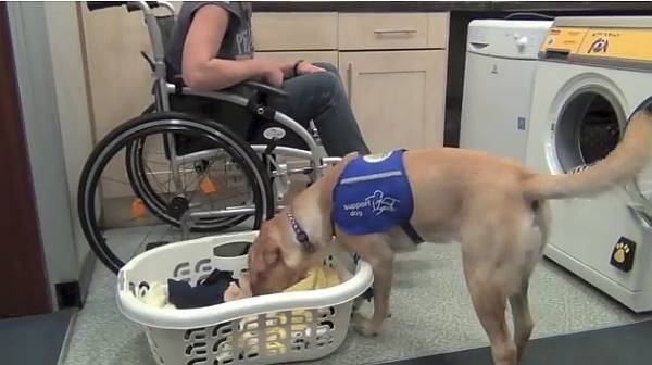 障がい者補助犬が飼い主に代わって洗濯ができるよう、様々な工夫が施されています。