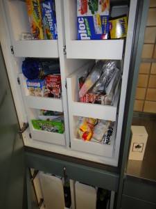 食品庫もコの字の棚を用いて・・・