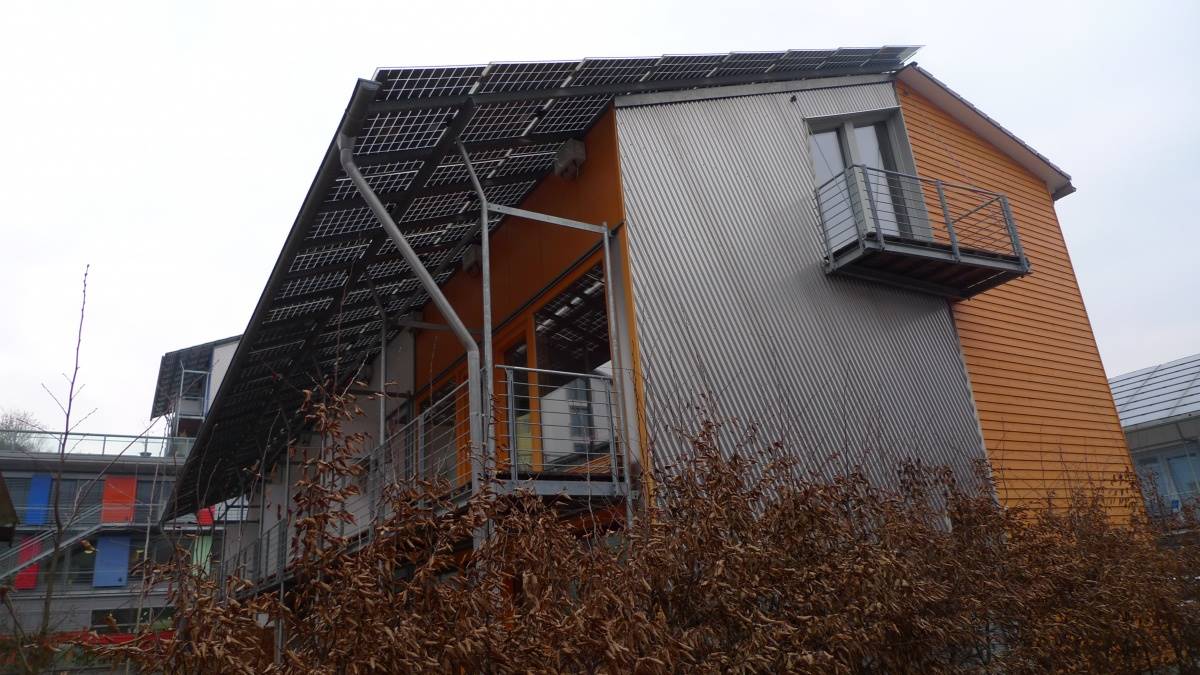ドイツは、本当にいたるところに太陽光パネルを設置しています。ビルの上にも軒並み太陽光パネルが並んでいます。ビル自体もカラフルで街が明るいです。これは、駐車場の屋根を下から見た図。ここにも 、太陽光パネルがぎっしり。こちらは、ぎっしりどころか、屋根をはみ出して、軒兼太陽光パネルみたいになってます。 これは、街の焼却場です。街のあらゆるところにこんな場所があり、燃やした熱で沸かしたお湯を各家庭に供給しています。合理的ですね。太陽光パネルの数がエコへの意識の高さを物語っています。日本の目指すものがここにあるのかも知れません。