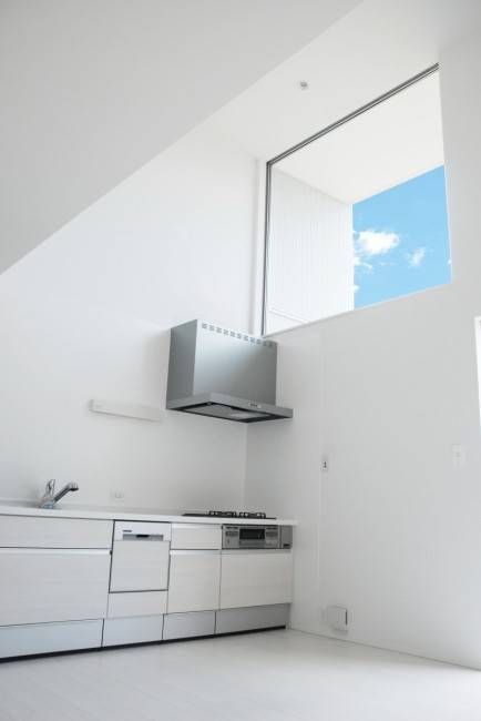 美術館の作品のように、空を大胆に美しく切り取る窓。こちらは、家のメイン、リビング上部に設置された窓です。casa biancoでは、ひとつひとつの窓の配置や、形状にも意味とこだわりを注ぎ込んでいます。別の棟になりますが、こんな感じ