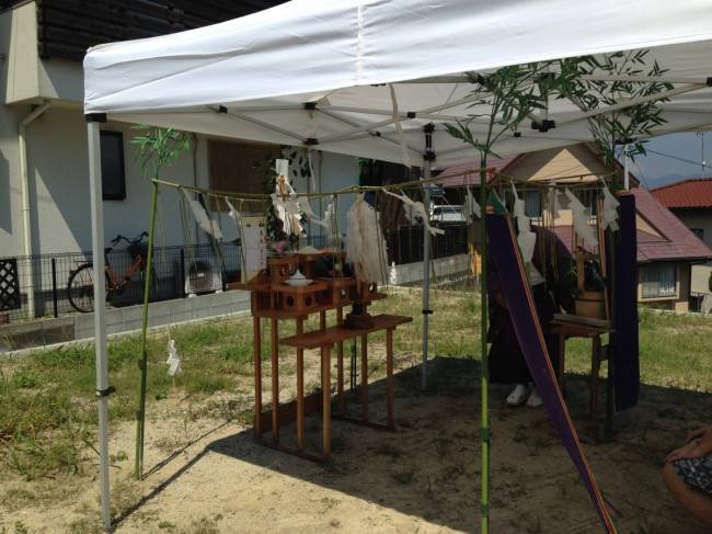 その土地の神様をお祀りして、これから始まる工事の安全と家の繁栄を