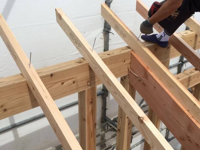 垂木をビスで止めてます。