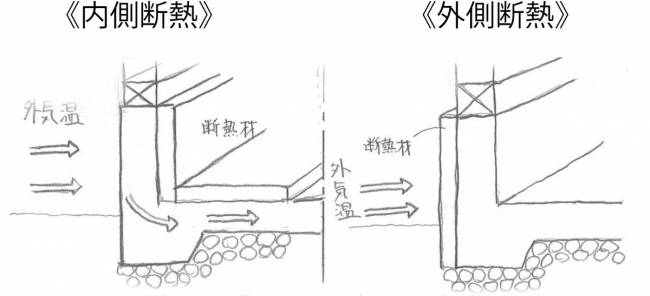 内断熱工法は、外気温がコンクリートに直接、接してしまい