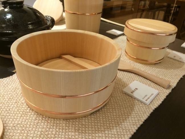 おいしい研ぎ方に必要な物をご紹介します。樹齢百年を超える木材をつかった木曽さわらの米研ぎ桶です。材料である、木曽さわらには、優れた耐水性と耐酸性があり、木目がつまっていて丈夫なため、手入れをすれば長年お使いいただけます。桶の特徴としては、底が平で研ぎ易く、当たりが柔らかくてお米が割れにくく、さわらのもつ自然な摩擦で効果的にお米がとげます。精米してからある程度時間のたったお米の参加した表面をしっかり研ぎたい場合などは、特に便利です。と、まあうんちくは、いろいろあるのですが、実際使ってみない事には、この良さはわからないのがほんとのところです。実際に見て触れたい方は、是非当社ライフスタイルギャラリーにお越し下さい。お待ちしております。
