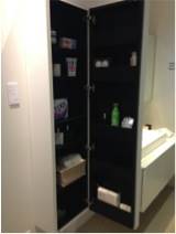 また、普通の収納棚に見えますが、見落としがちな扉の裏も有効に使える収納家具。普段使いの物も、ストック類等もたくさん収納できます。