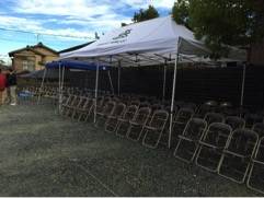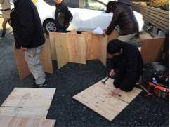 まずは、社員全員での会場設営テーブルや椅子の作成
