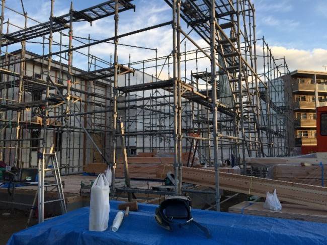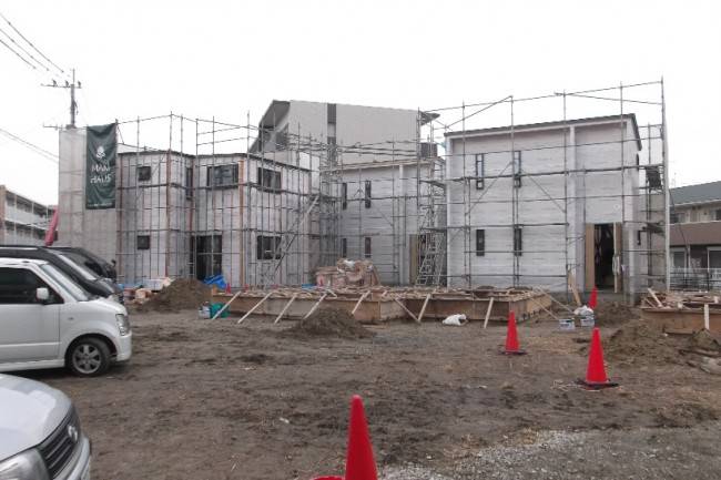 私は西区戸建賃貸PROJECTの現場担当しています。現在3棟(A・B・D 棟)は木工事中で、残り4棟(C・E・F・G棟)の建築予定で進んでいます。