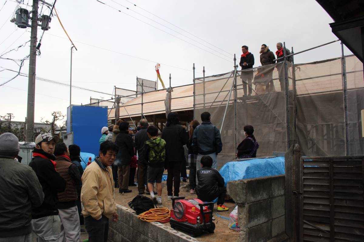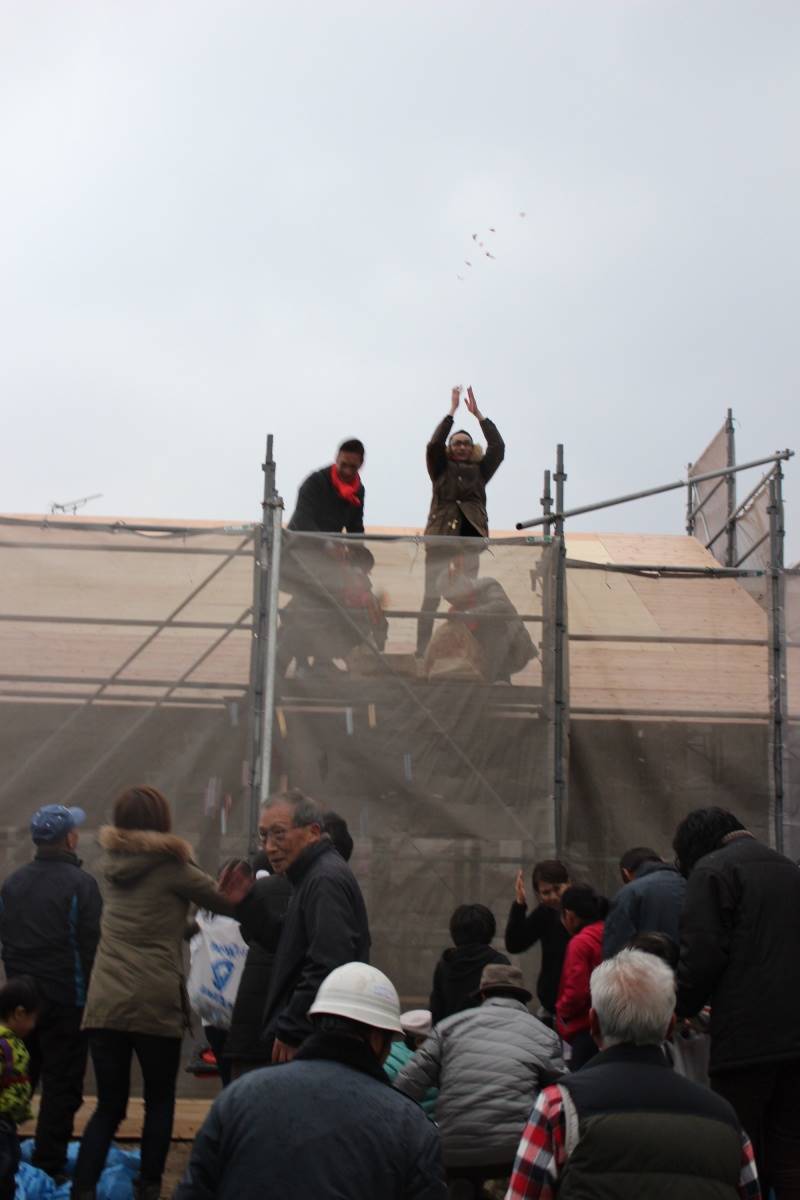 上棟式を終え、お待ちかねの餅まきです!