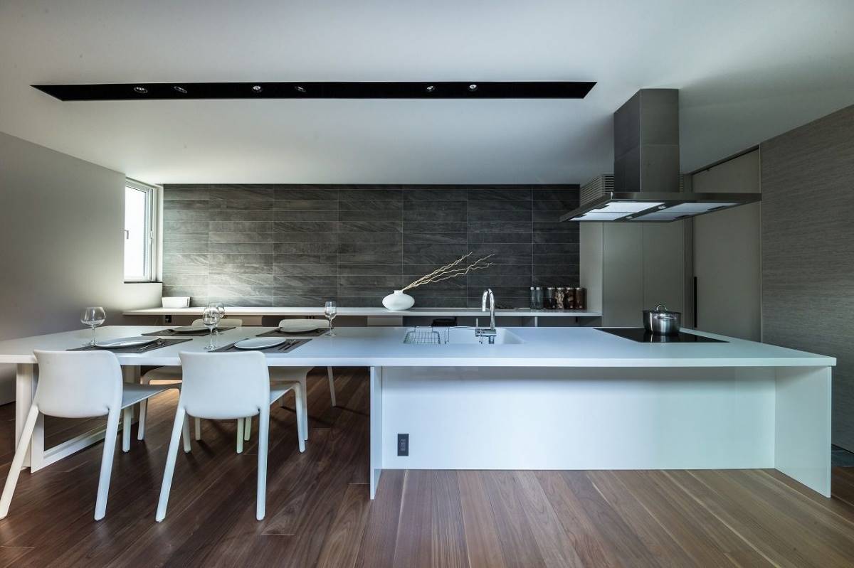 料理を作る人、食べる人が、一つのテーブルを囲めるよう、ダイニングテーブルとキッチンを一体化しました。