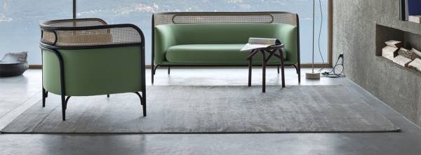 今年多く見られたのはハイバックのソファ。以前話題となったハイバックソファは、どちらかというと、コントラクト家具のイメージ、個室を想起させるようなものでしたが、今回は上半身全体を受け止め、座る人を寛がせようという意思が強く感じられます。高さ方向に圧迫感がある為、大きすぎないサイズで後から追加するなどユニット型のものもあるようです。