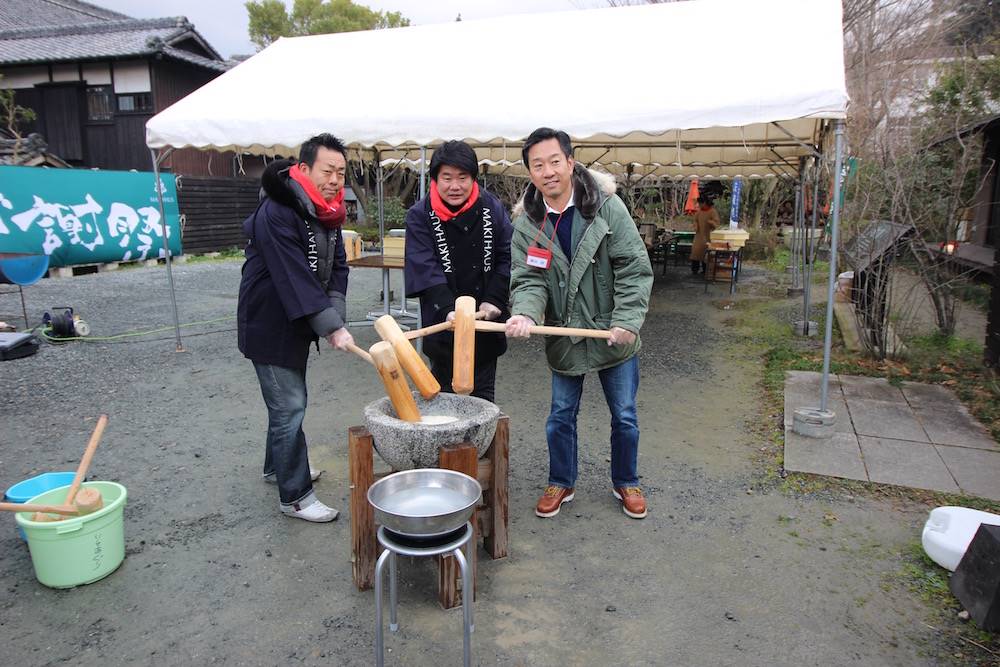 杵と臼にお子さんたちも悪戦苦闘してました。