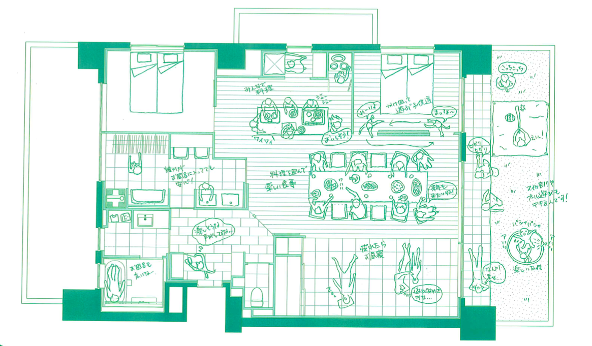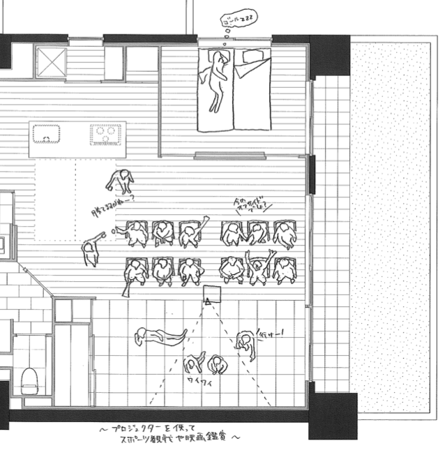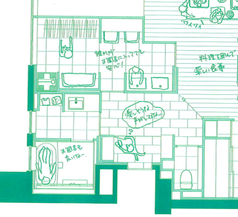 間取りとCGでIプロジェクト全体像が見えてきたかと思います。次はリノベーションカーサスタッフ作成のイラストにて、Iプロジェクトの楽しい使い方をご提案いたします。