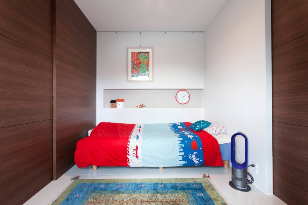 壁にニッチを造ったりピクチャーレールを設置したりして、好きなアートを飾れる子供部屋にしました。お子様が上手に掛けた絵を飾ると、家族みんなが楽しくなりますね。