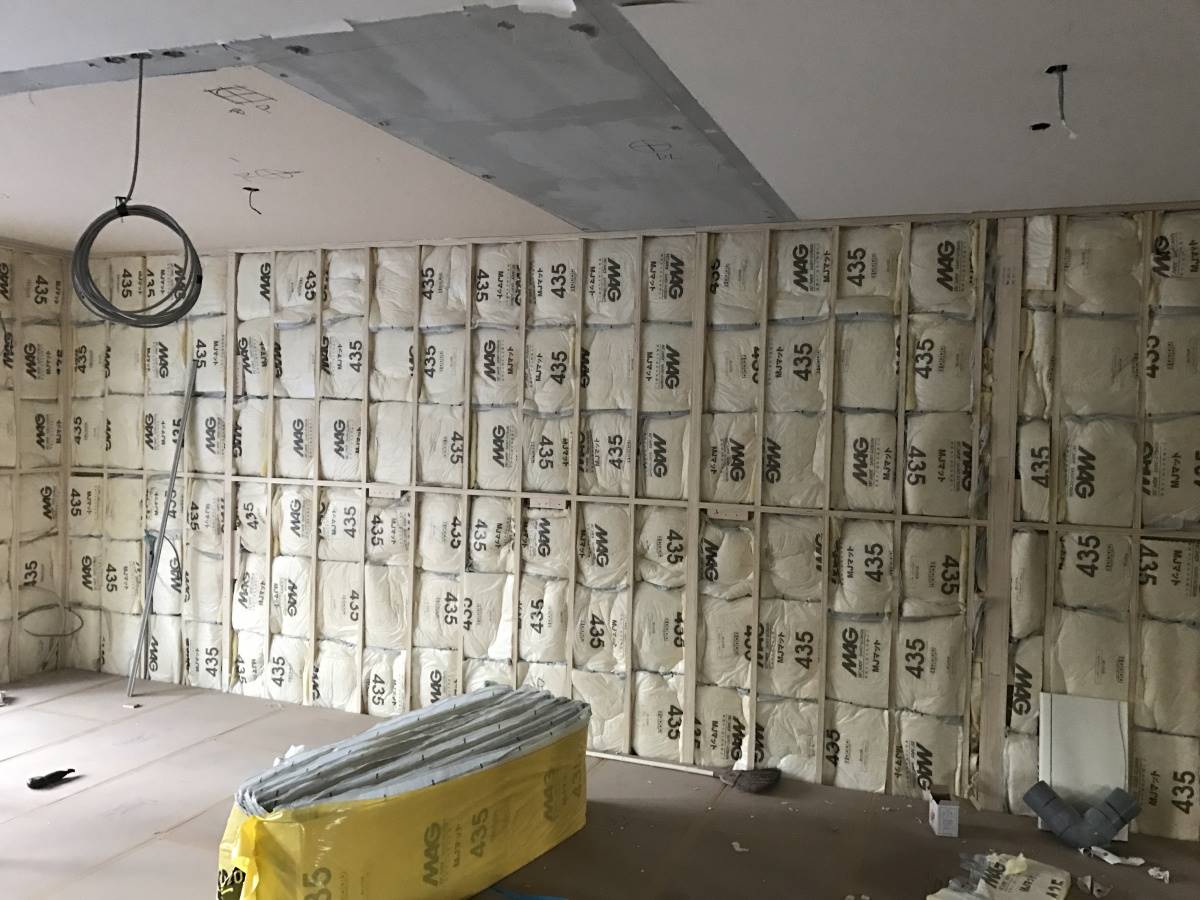 周りに敷き詰められているのは断熱材です。壁の内部はこうなっているんです。しっかりと断熱対策を行います。