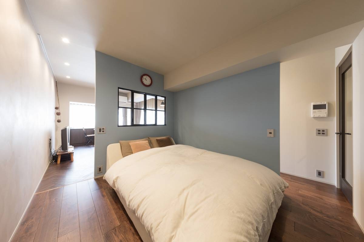 寝室には落ち着いた色合いのアクセントクロスがお勧めです。