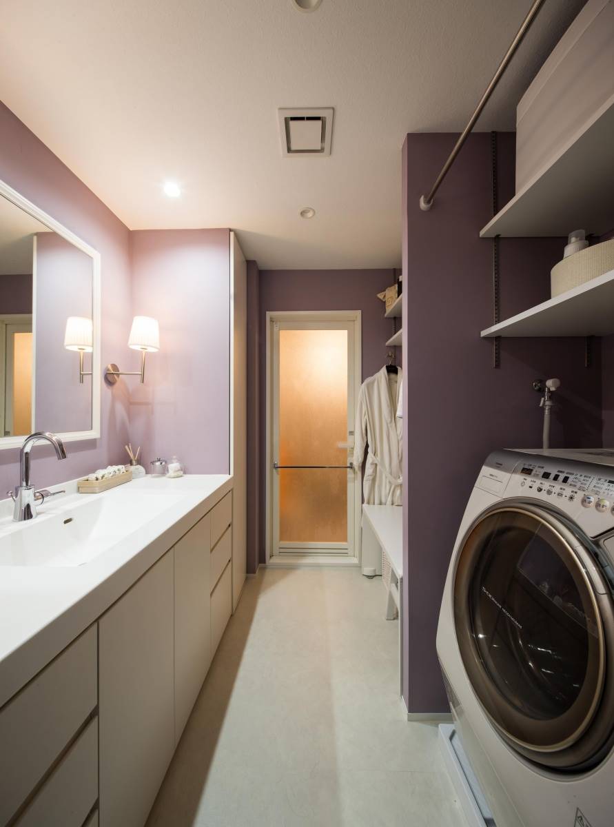 クロスの中にも防水・防汚加工などが施されている機能性のあるクロスもありますので、部屋の用途に合わせて色のみならず機能面も考えて選ぶとより効果的です。洗面室には防水性のあるクロスを貼りました。