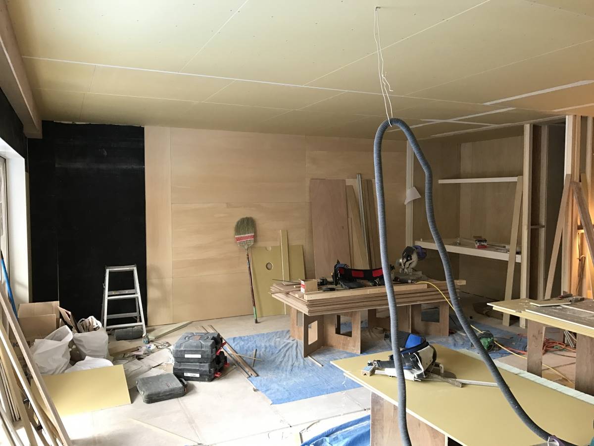 正面の壁に貼られているのが合板ベニヤです。