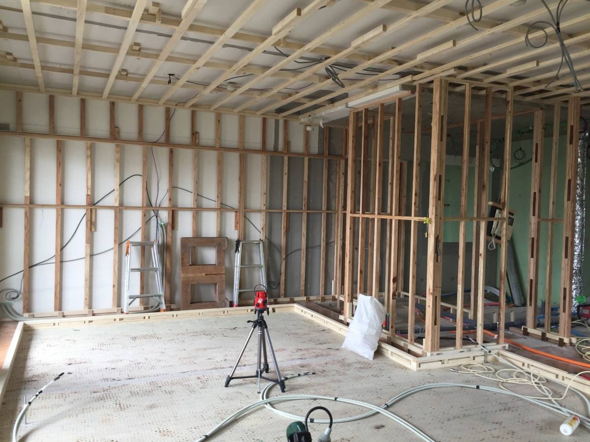 前回のブログで木下地工事の様子をご紹介しましたが、LVLや石膏ボードなど、建築資材の用語が色々と出てきたかと思います。フローリングや壁紙の下にあって普段目にすることのないこれらの下地材。一体どんなものなのか、ご紹介していきます。