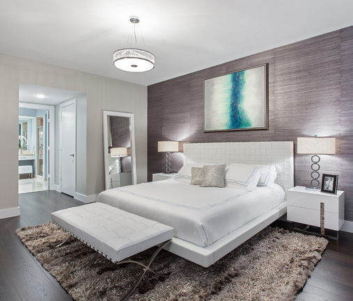 リビングやダイニングがフローリングならば、ベッドルームはカーペットにしてみてはいかがでしょう。素材を変えることで違った雰囲気になり、また絨毯やカーペットの温かい雰囲気が高級感を演出します。裸足で歩いても気持ちがよく足音も響きにくいので、実は寝室にはおすすめの素材です。