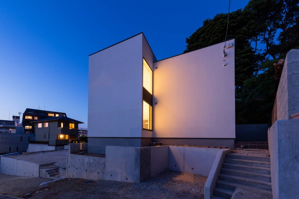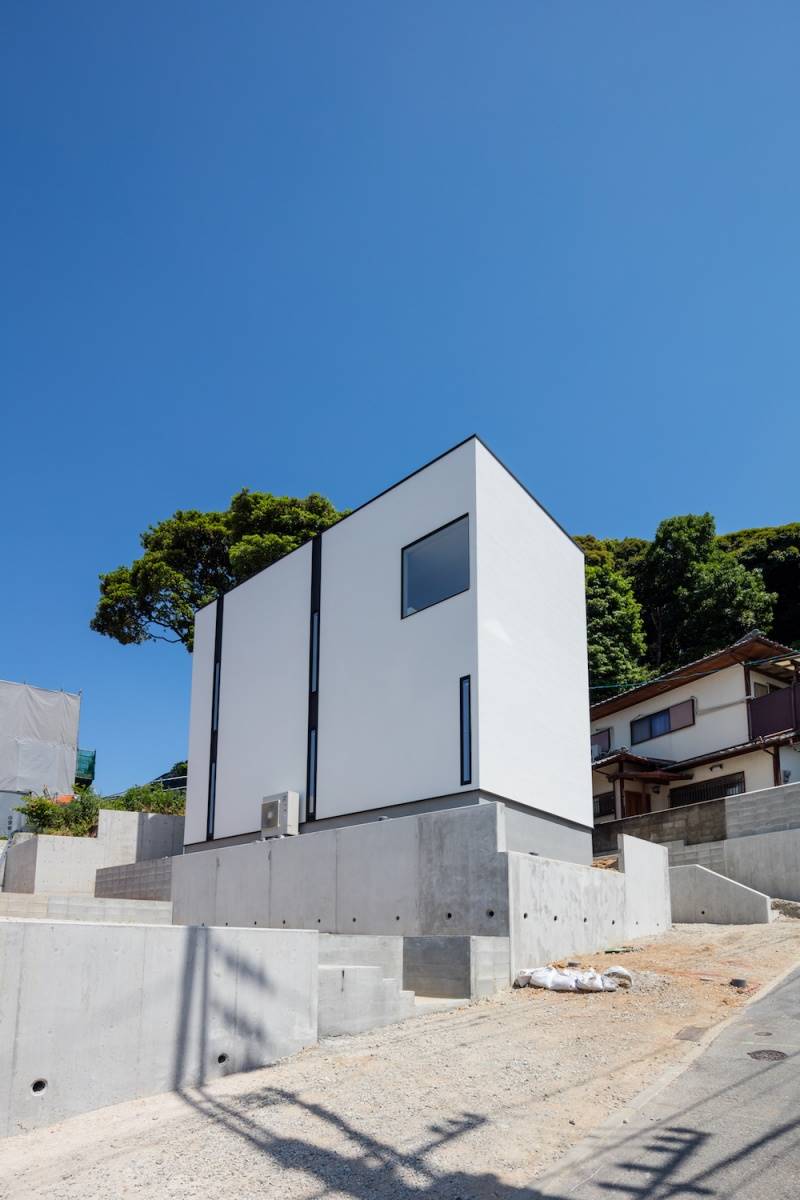 大きな窓が印象的な、シンプルなデザインの住まいです。