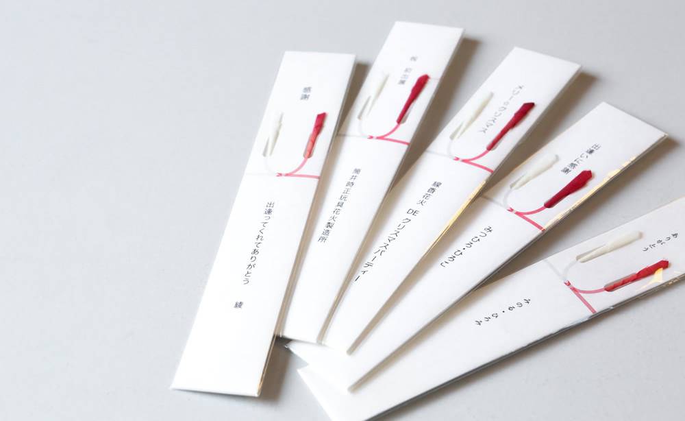 よく見ると水引の部分が紅白に染められた線香花火でできています。なかなかないおしゃれなデザイン!名入れもできますので、お祝いの日のプチギフトとして配ると喜ばれそうですね。