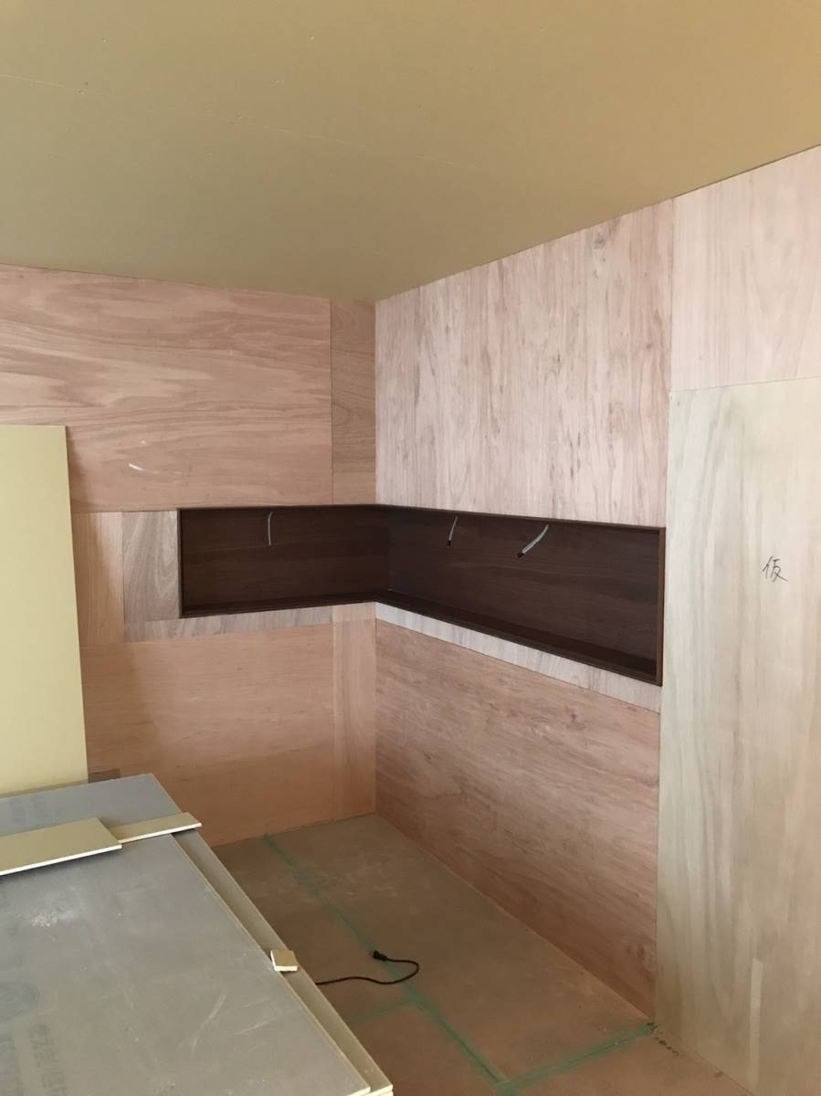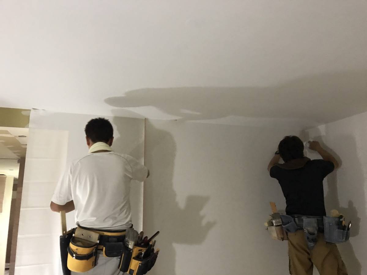 クロスを貼っているところ。ここからは日に日に内装材が施工されていき、あっという間に完成に近づいていきます。