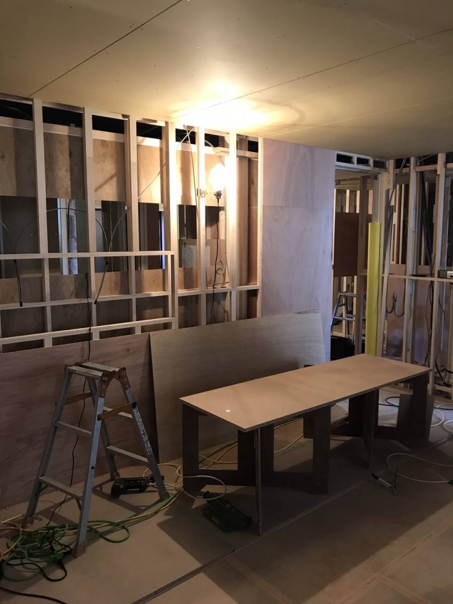 工事40日目。造作工事もほぼ終わり、ニッチなどの衣装的な部分を仕上げています。