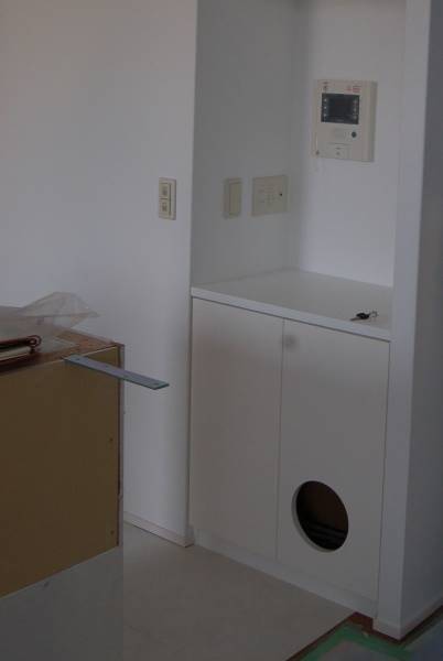 こちらは既存の収納の扉だけを造り替え、穴を開けて猫が出入りできるようにしました。