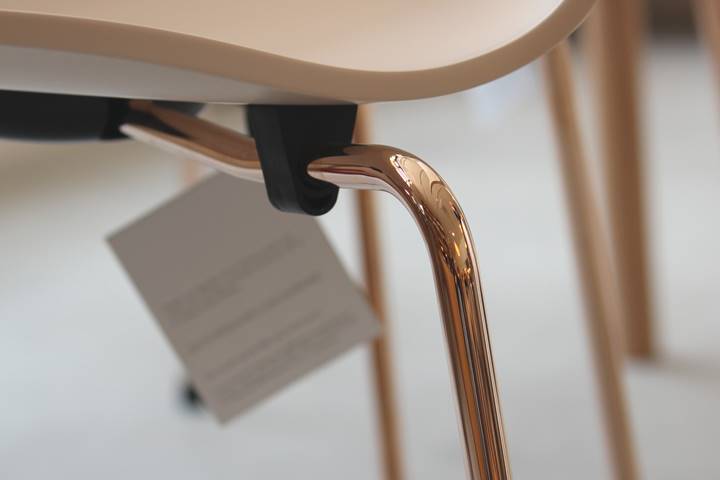 日本の桜の色をイメージしたという薄いピンク。脚の部分がローズゴールドのメッキ仕上げで、これがなんとも上品な雰囲気を醸し出していました。
