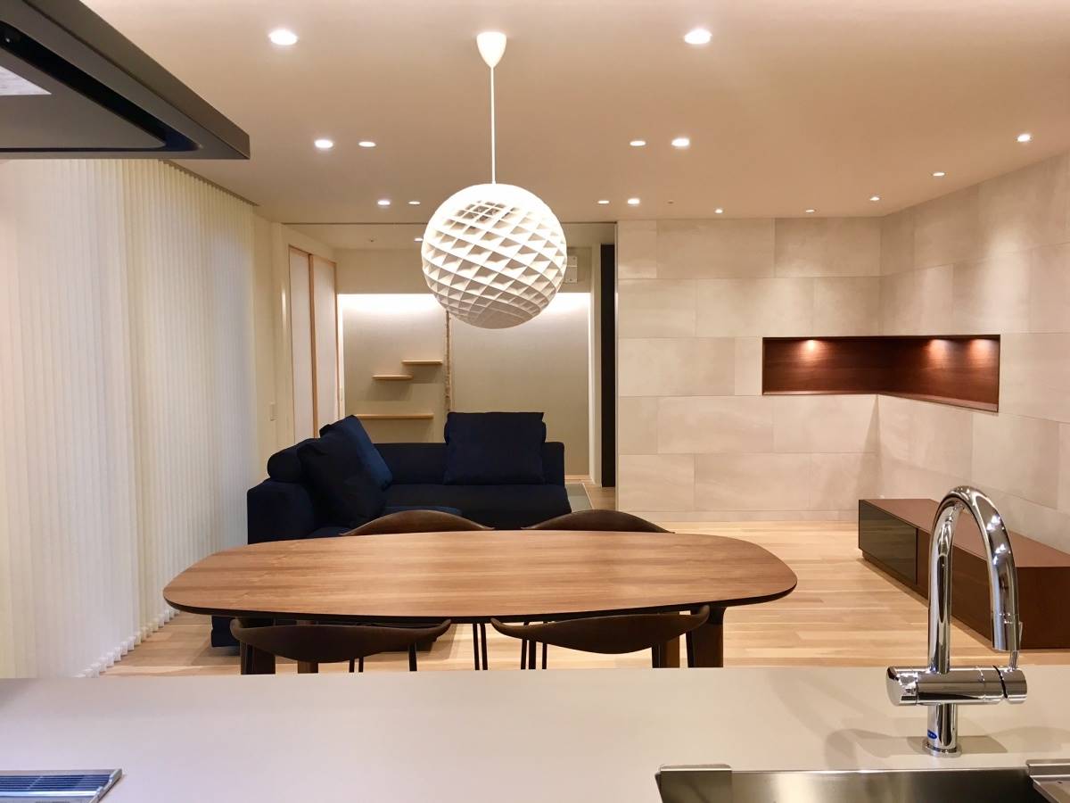 先月工事が終わった薬院のマンションリノベーションは、その後無事に家具や照明器具も納品され、新しい空間として完成を迎えました。