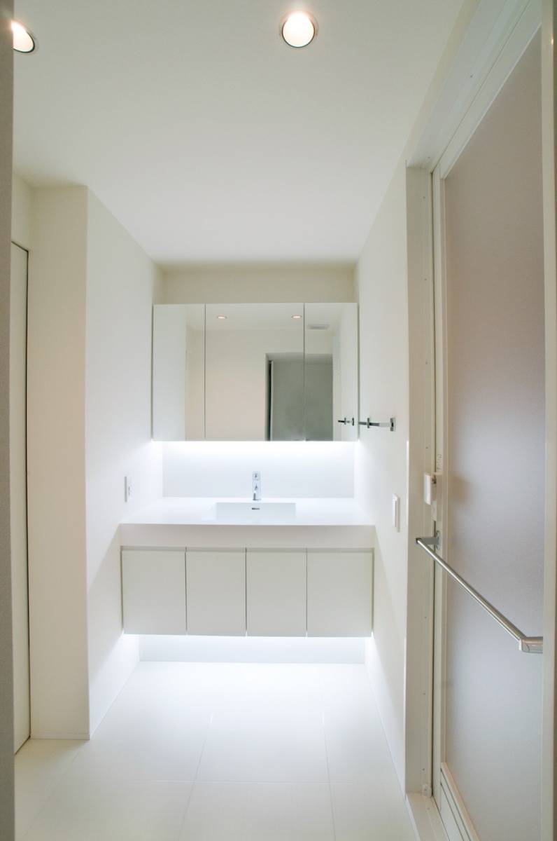 床や天井、壁、そして洗面化粧台を白で仕上げます。全体的に白で統一することで清潔感が出ます。また汚れが目立ちやすいので、逆にお掃除が進みやすくなります。