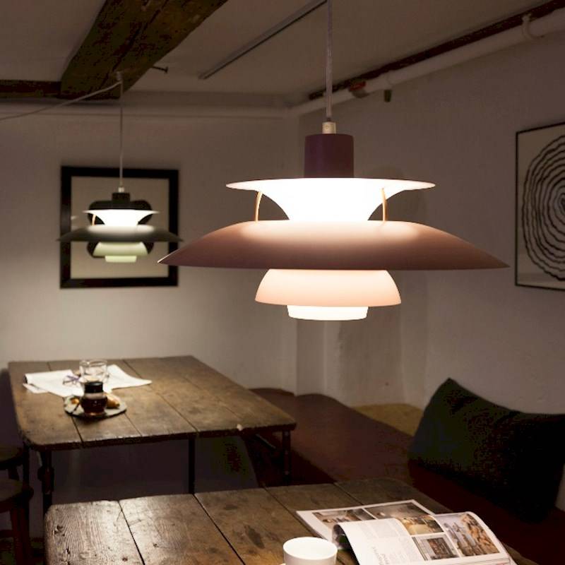 PH5には絶対的な高さへのこだわりがあります。卓上をしっかりと照らし、テーブルを囲む人々の顔を柔らかく美しく照らすためには、卓上60cmの位置にペンダントライトを吊るすことがベストとされています。シーリングライトに慣れている日本人にとって、実際にその高さにペンダントライトが下がっていると違和感があるかもしれませんが、北欧ではそうして人の目と近い位置にランプが置かれることが当たり前です。