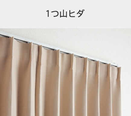 一般的に規格サイズ(既製品)やイージーオーダー仕様に多く使われます。3つ山カーテンに比べ、ウェーブがゆるやかですっきりとした印象を与えます。シンプルでモダンな空間におすすめします。横幅に対して生地を1.5倍使うのが標準的です。