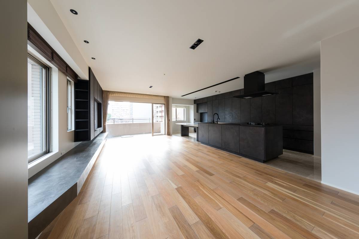 六本松のマンションリノベーション、ついに完成しました!オーナー様と初めてお会いしたのは3月、完成物件のオープンハウスにお越しいただいた時でした。それから早速4月に現地調査を行い、プレゼンテーションにてイメージをお伝えし、設計契約を締結させていただいてから約2ヶ月半お打ち合わせを行いました。そして7月下旬に着工し、約2ヶ月工事を行ってようやく完成いたしました。