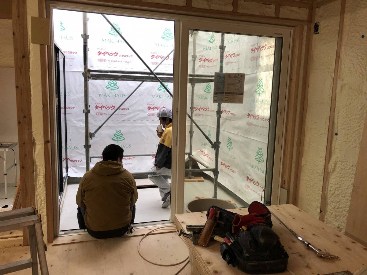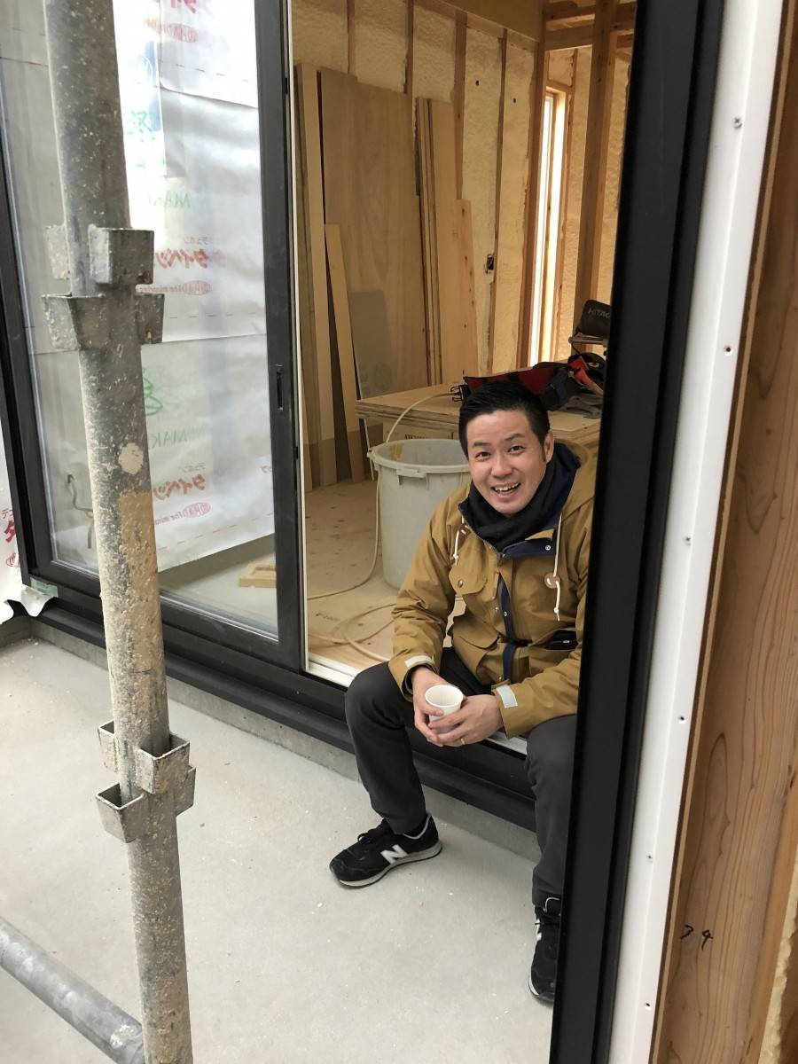 ちょっと休憩で弊社スタッフが窓辺に腰かけ、職人さんと会話をしているワンシーンがありました。