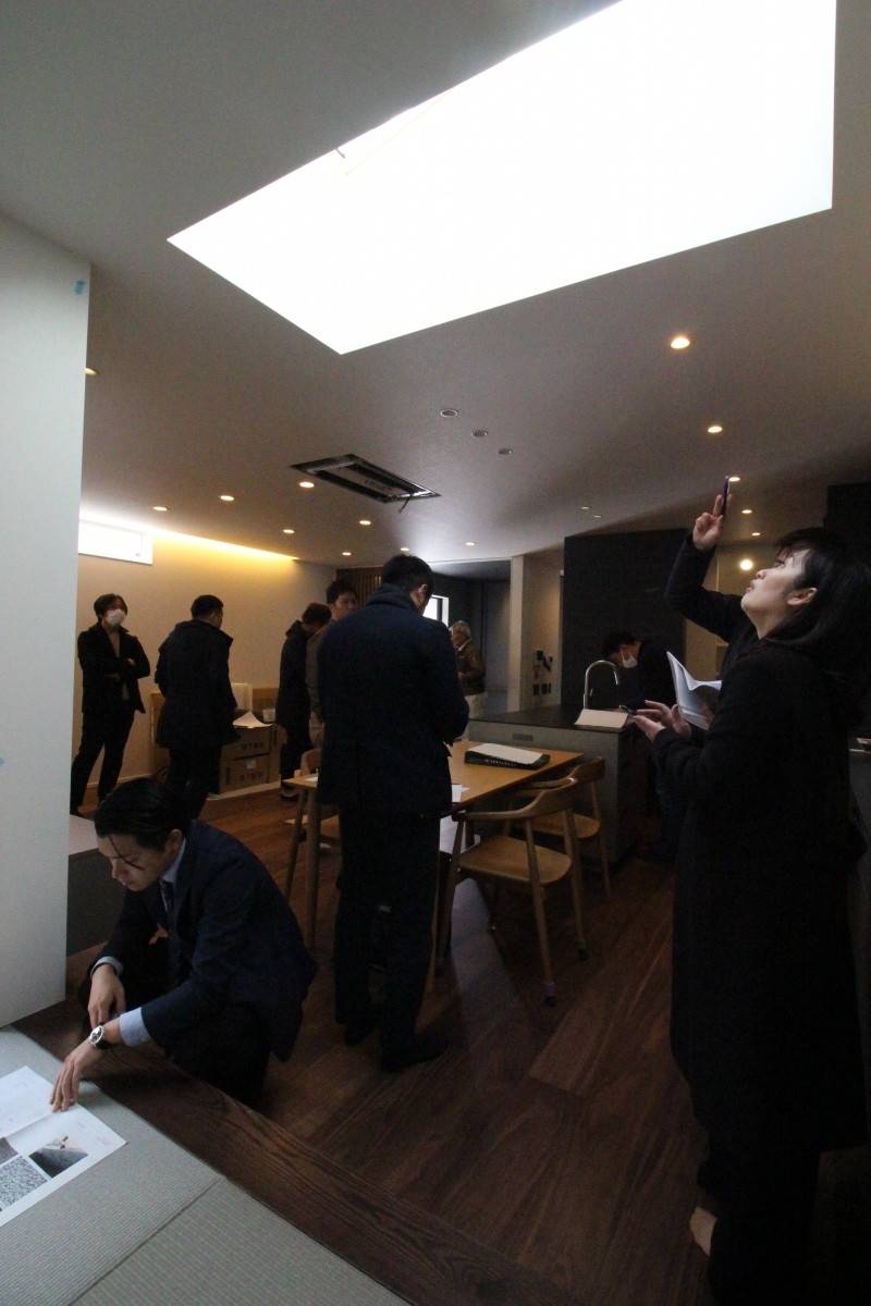 一通りチェックが終わった後は、お客様との出会い・打ち合わせの様子・そして完成までの出来事を担当者から聞いたり、互いに意見を交えたりしながら勉強会を行います。