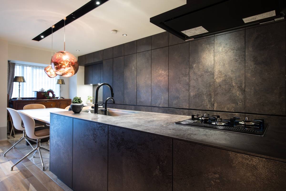 こちらはMELTというランプのシリーズ。カッパー色、ゴールド、スモークの3種類の色があり、大きさも大小2サイズの展開です。ガラスのように見えますが実はポリカーボネート製で、驚くほど軽いです。見る角度によって光り方が変わり、美しい光の陰影を楽しむことができます。物体が溶けているように見えることから、この名前が付いたのだと思います。