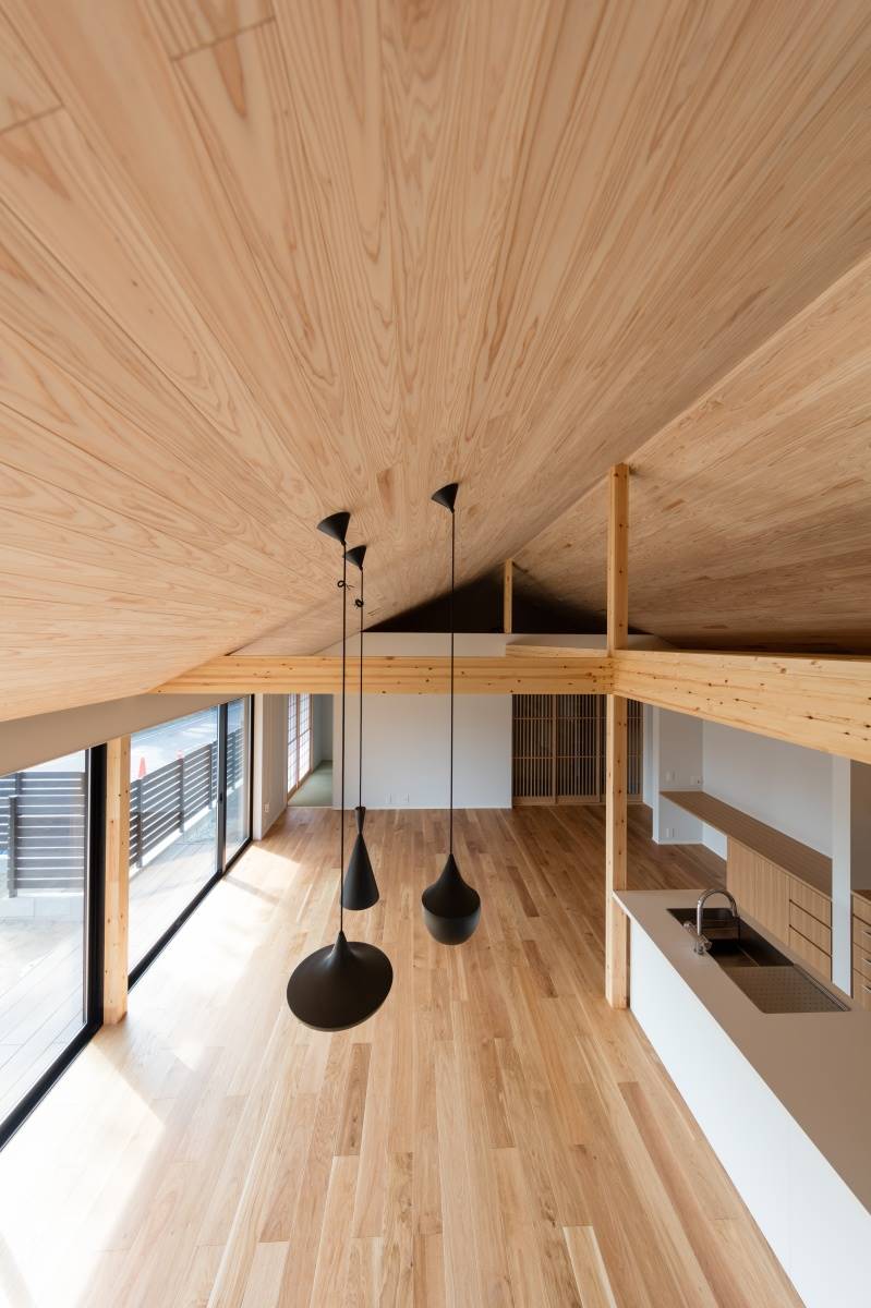 MELTと並んで人気のBEATのシリーズ。とんがり帽子、どんぐり帽子、平たい帽子、といったイメージの3種類で色はブラック、ゴールド、ホワイト、グレーの4色です。シェードの中がゴールドになっているというイタリア的なモダンなデザインが人気の秘密ですが、このように和風の空間にも違和感なく溶け込みます。吹き抜け部分の天井から吊り下げても素敵ですね。