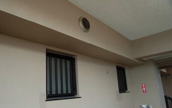 ?通常、廊下側かバルコニー側のどこかにレンジフード・浴室・トイレなどの排気口が設けられています。排気口は替えられない為、排気可能なルートを確認してどのような位置にキッチンや浴室が設置可能かを判断します。例えばキッチンの位置を変更した場合、既存のキッチンの排気ルート(レンジフードから外部の排気口までの菅のルート)と変更したい位置からの排気ルートの間に梁を挟んでしまう場合、梁を貫通することはできないのでキッチンの位置の変更は不可能であると判断します。