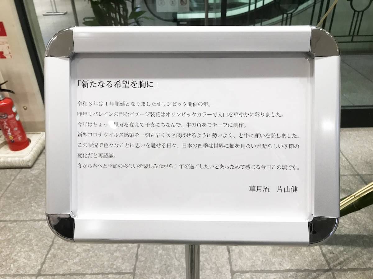 昨年同様、草月流の片山様のダイナミックで美しい作品で彩られておりました。