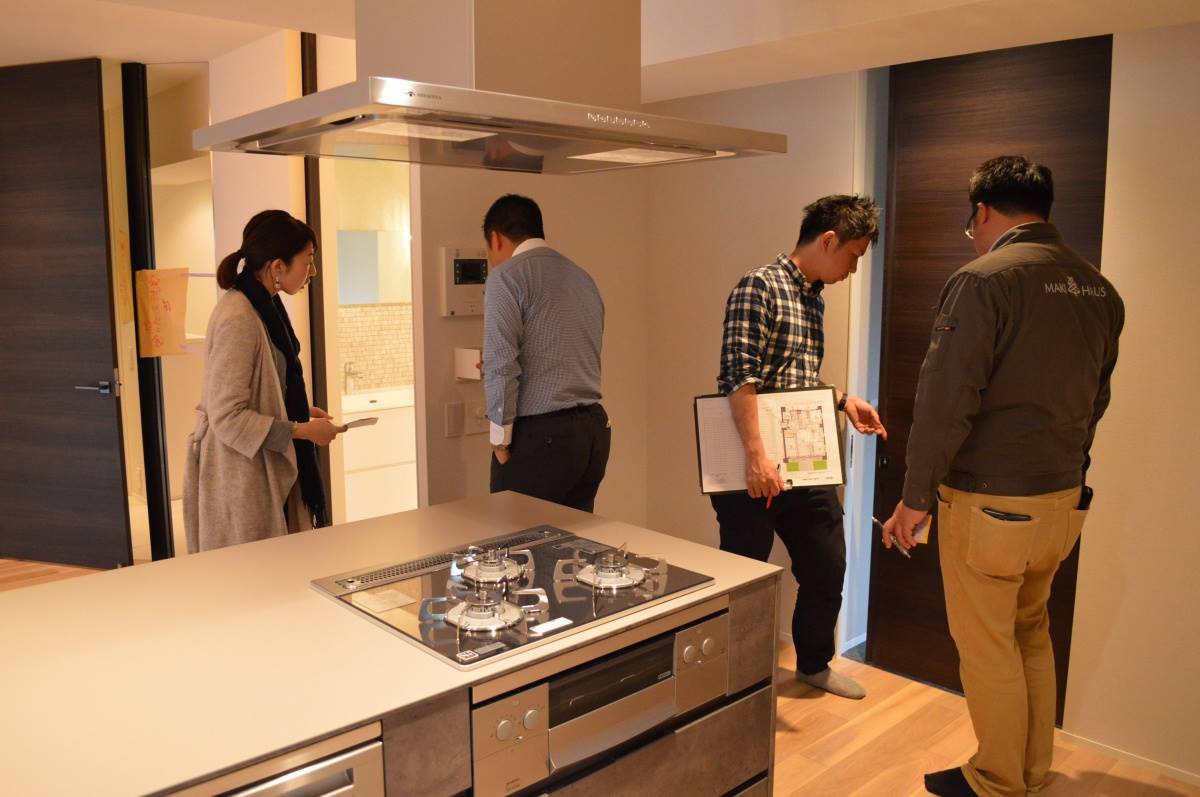 完成前の重要事項として「社内検査」という項目があります。設計や工務に携わったスタッフはもちろんのこと、チームや部署を超えて社内のスタッフが厳しい目で仕上がりを確認し、未施工箇所がないか、不具合はないか、汚れている部分はないか、隅々までチェックしていきます。ガス、電気、水道などのライフラインも確認します。