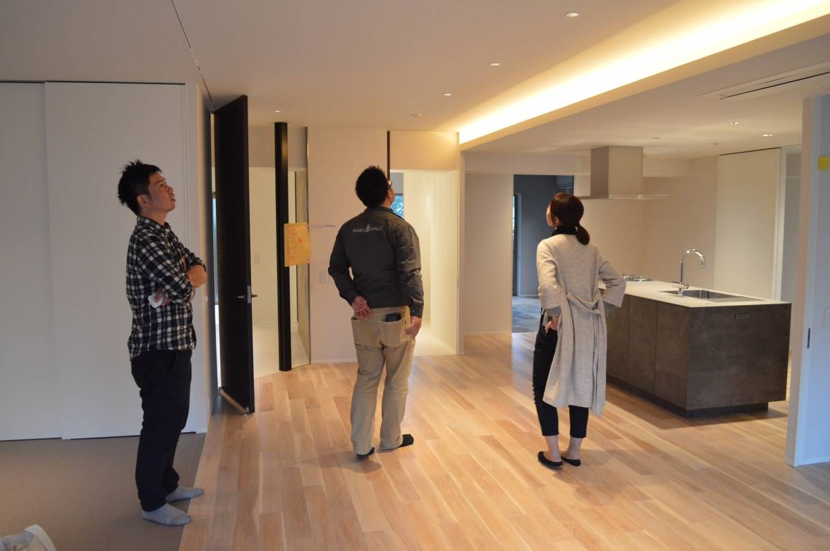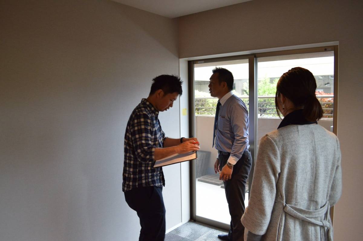 そして、社内検査での厳しいチェックを経て、いよいよお施主様検査。厳しい目で隅々まで確認していただき、気になるところはないか、不安な点はないかをご指摘いただきます。