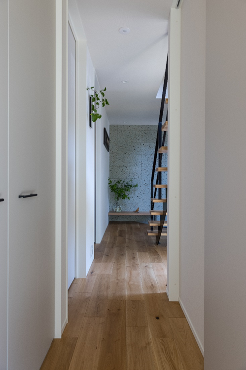 玄関に立つと、根強いファンを持つ、上品かつ主張ある素材「大谷石」が出迎えてくれます。