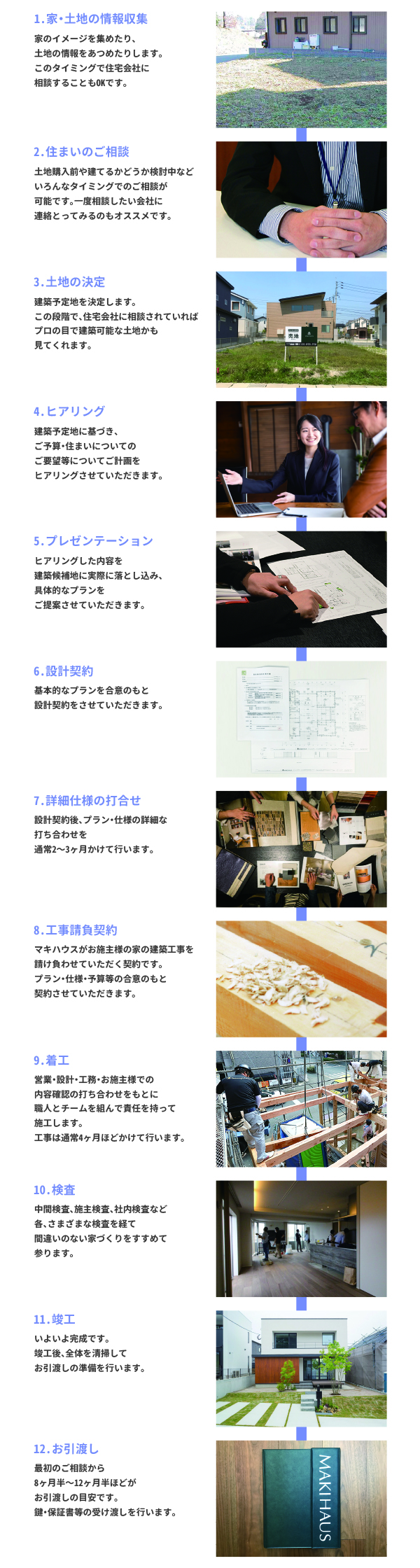 家づくりには、お引渡しまでにいくつかの工程がございます。