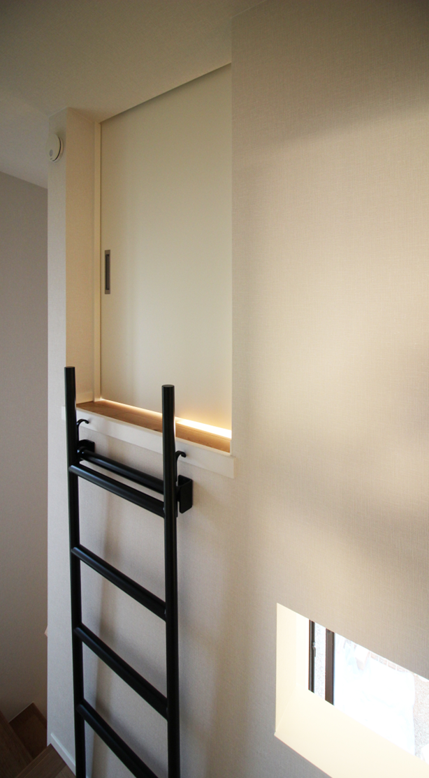 2階には、備え付けの梯子で上がる部屋など秘密基地のような場所もあり、家族で過ごす場所、それぞれで過ごす場所両方が充実した過ごしやすい住まいです。