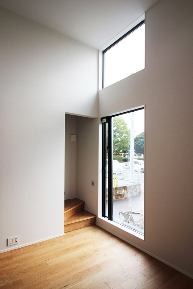 この家のシンボルは2階から1階まで伸びた窓です。